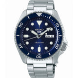 The Seiko 5 SRPD51K Stainless Steel Watch with a vibrant blue dial, driven by the wearer's motion via its automatic movement (Caliber No. 4R36). Featuring a 41-hour power reserve, 42.5mm case size, and 13.4mm case thickness, it offers durability and comfort. Weighing 167g, it strikes a balanced feel. Crafted with a stainless-steel case and bracelet, protected by hardlex glass, and equipped with a pull-out crown, this watch is water-resistant up to 100 meters, making it suitable for everyday wear and water activities.