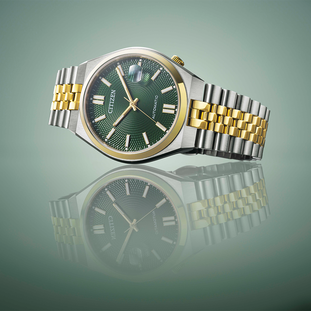 - Gold-Plated Stainless-Steel Case and Bracelet