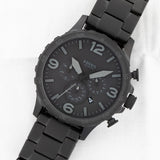 A very sporty piece, this men's Multi-function watch by Fossil will add ounces to your super-cool attitude. The watch has a black ion plated stainless steel bracelet with a push button deployment clasp, paired with a black ion plated stainless steel case. Encased is a black dial with three sub dials. The three luminous gold toned hands and the luminous gold tone numeral quarter markings contribute essentially to your funky look.