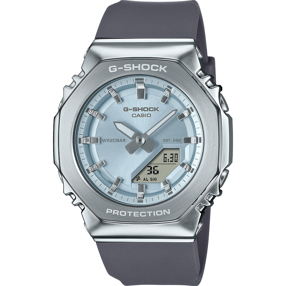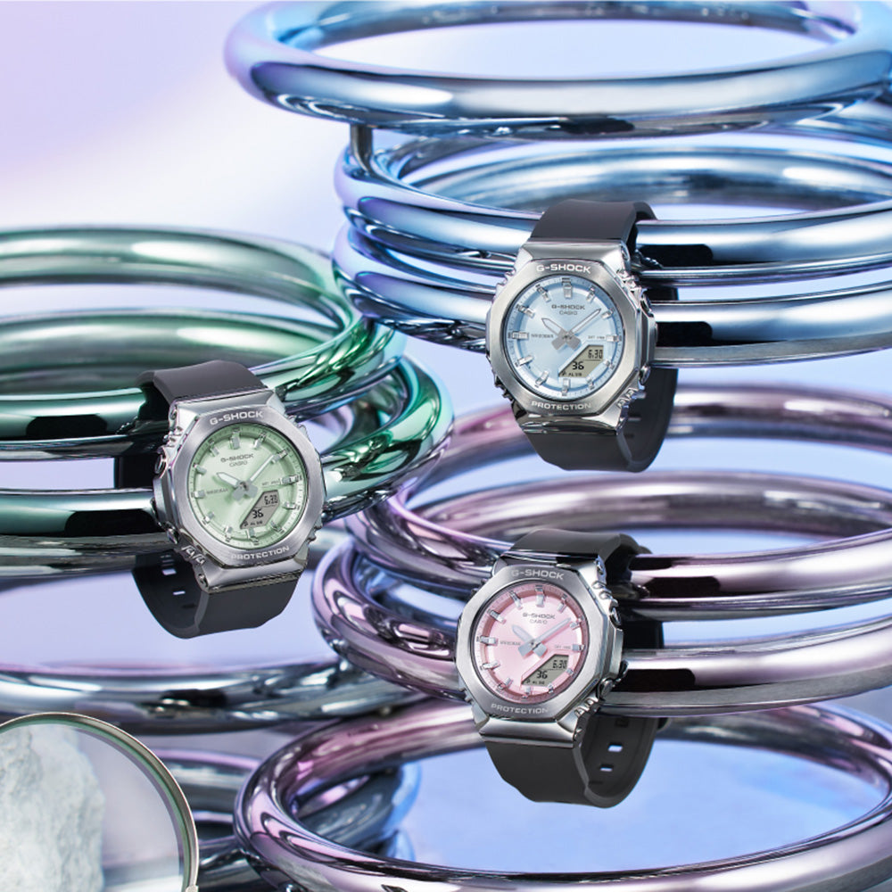 With a slimmer top bezel and index marks, the GMS2110-2A offers a refined look and a more comfortable fit, especially for slimmer wrists, thanks to its 190mm band length—shorter than the GM-S2100. The watch’s 45.9×40.5×11mm case, crafted from resin and stainless steel, weighs just 56g, providing durability and a lightweight feel.