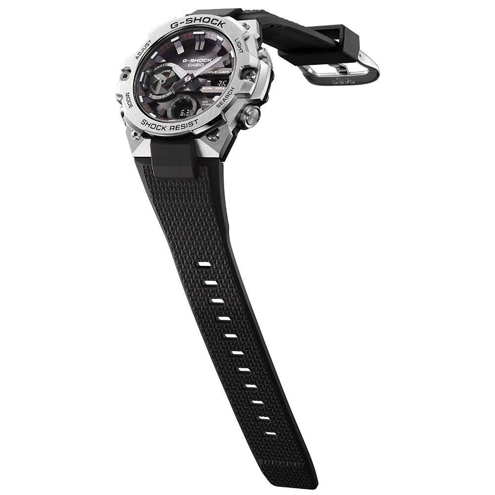 Key features include dual time display, stopwatch, alarm, Super Illuminator LED light, and a full auto-calendar (to 2099). With energy-saving mode, battery level indicator, and up to 24 months of operation in power-save mode, the GSTB400-1A combines cutting-edge functionality with a sleek, modern design built for any occasion.