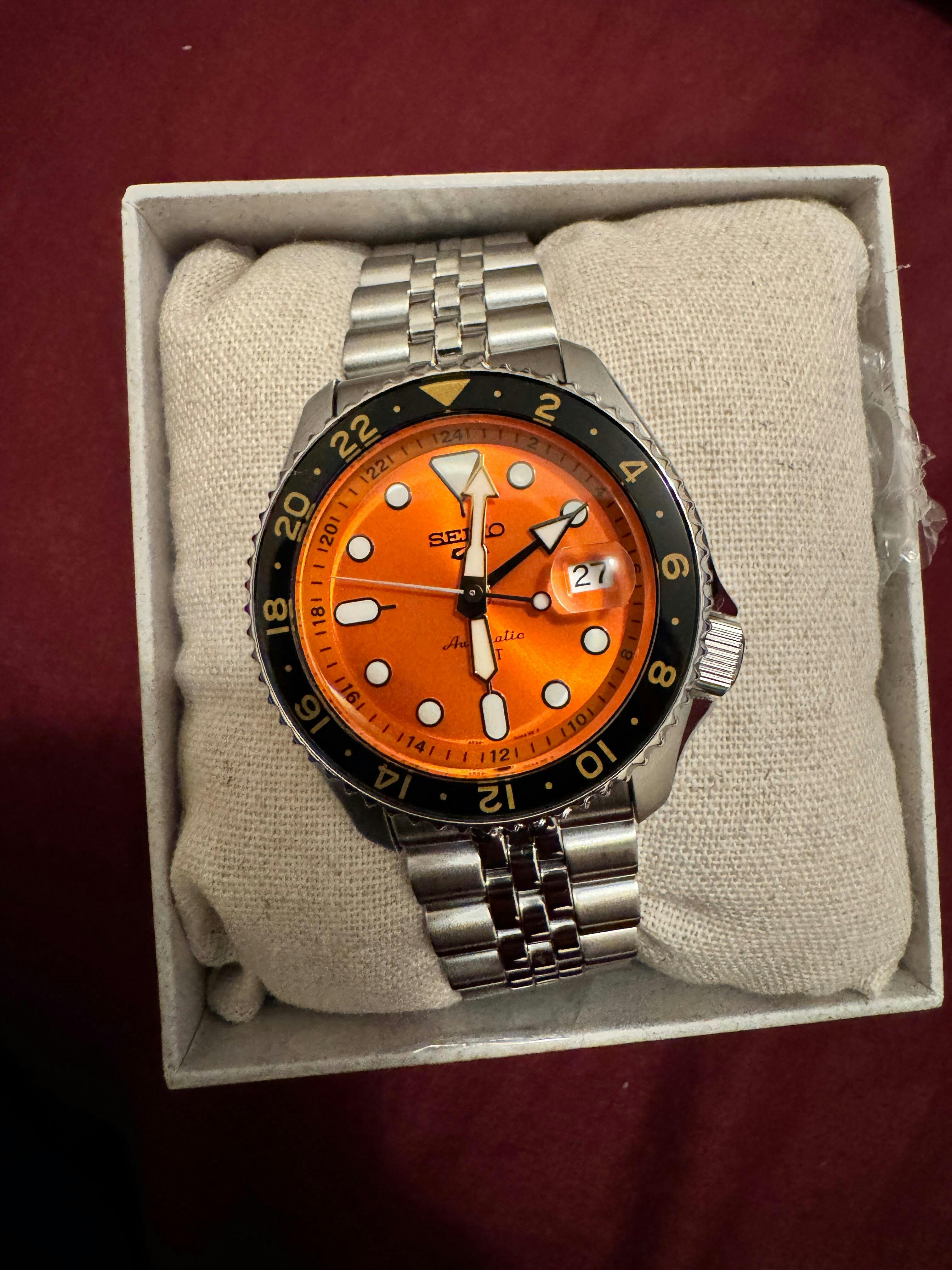 The dual-tone 24-hour bezel is coated with Hardlex for durability, while the addition of the GMT hand enhances practicality and visibility. Retaining the SKX legacy, the beads-of-rice bracelet features a distinctive design. Engineered for international timekeeping, the GMT hand and highly visible hour markers facilitate quick time zone calculations.