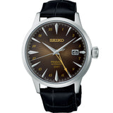 This model, part of Seiko’s first Cocktail Time series with GMT functionality, draws inspiration from the ‘Rusty Nail’ cocktail—a blend of Scotch whisky and Drambuie with a hint of smokiness and honey, garnished with lemon peel, which mirrors the watch’s brown dial.